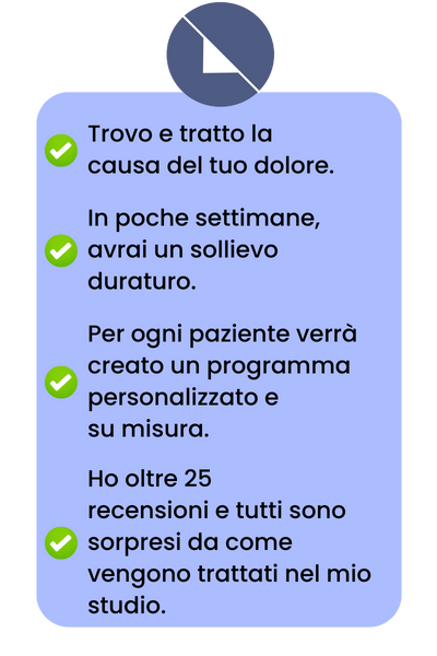 Offro trattamenti personalizzati per dolori muscolari e articolari, problemi posturali, cefalee e recupero post-operatorio, integrando esercizi terapeutici che rendono i pazienti più autonomi e sicuri nel movimento.
